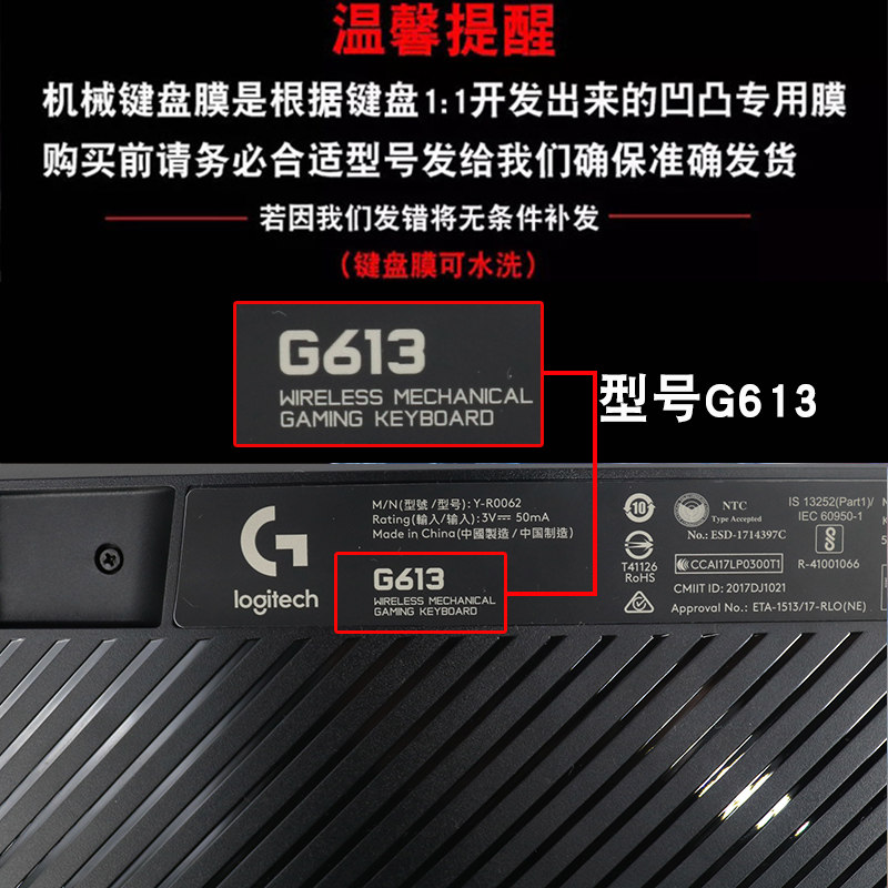 Logitech Logitech G613 Keyboard Membrane High Transparency TPU Mechanical Keyboard Protective Film LIGHTSPEED Wireless Bluetooth Game Dust Cover Full Coverage Dustproof Silicone Waterproof Cover Cover