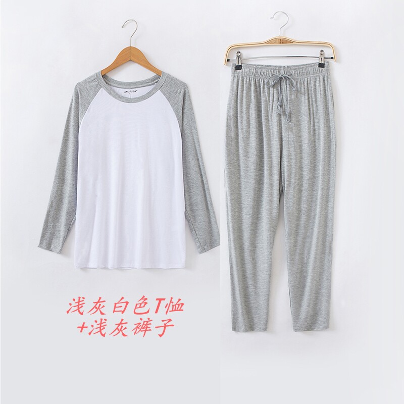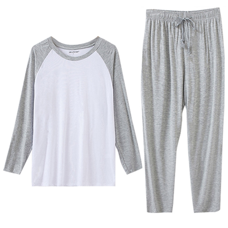 Dark blue light grey raglan long sleeves Dark blue trousers light grey and white raglan long sleeves Light grey trousers dark grey black raglan long sleeves Black trousers dark grey black raglan long sleeves Dark grey trousers dark blue light grey raglan long sleeves
