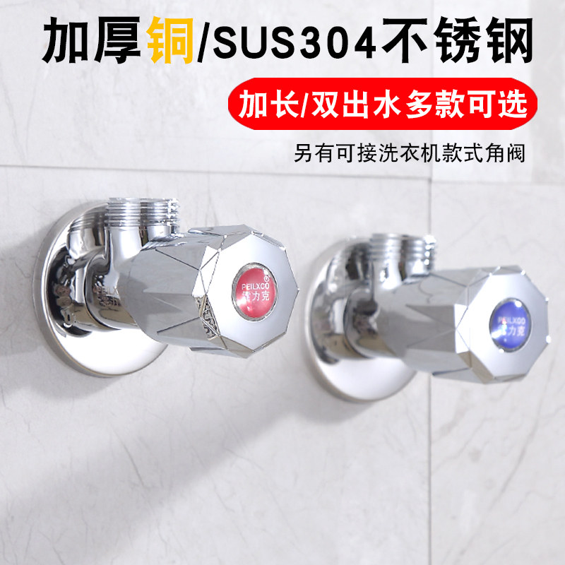 Extended copper one-in-two-out cold water heater water stop valve Household washing machine 304 stainless steel triangle valve switch