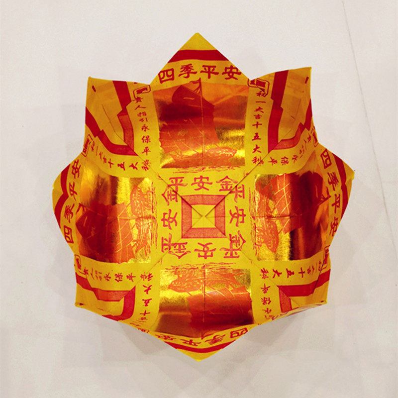 Self-produced and sold yellow paper tinfoil 12-inch lotus pot safe gold cornucopia handmade 100 packs