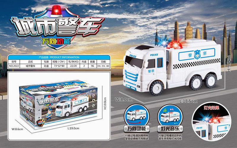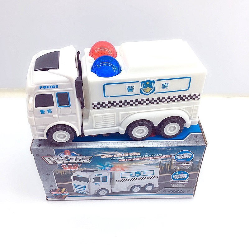 Electric universal police car on the ground running on its own turn Children's boys'and boys' children's toy ground stalls in the city Kindergarten mixed up