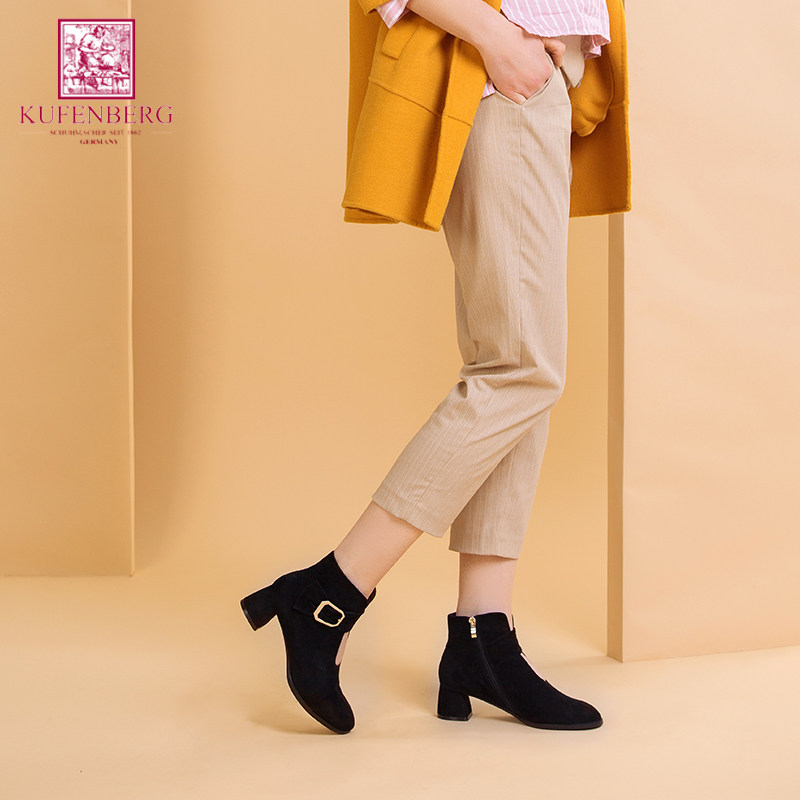 Comfortable and beautiful G version German KUFENBERG rose gold single butterfly 7511 mid-heel leather ankle boots