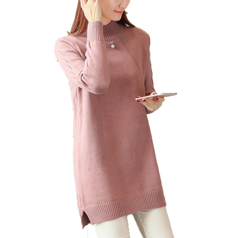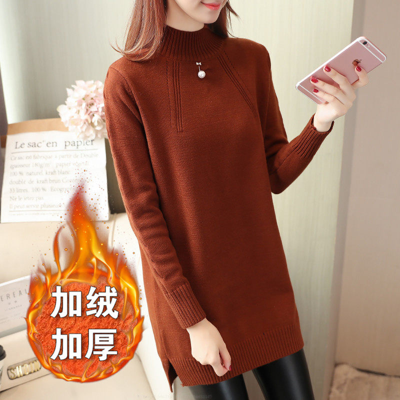 Half turtleneck plus velvet thick sweater women's spring and autumn 2022 new loose mid-length bottoming shirt long-sleeved knitted sweater