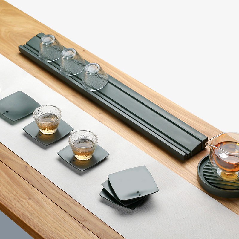 A cup mat with green planting a kettle with a cup frame luxury suit
