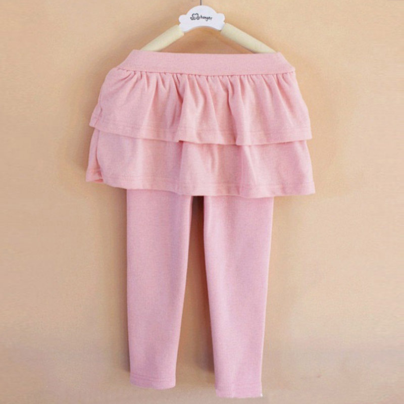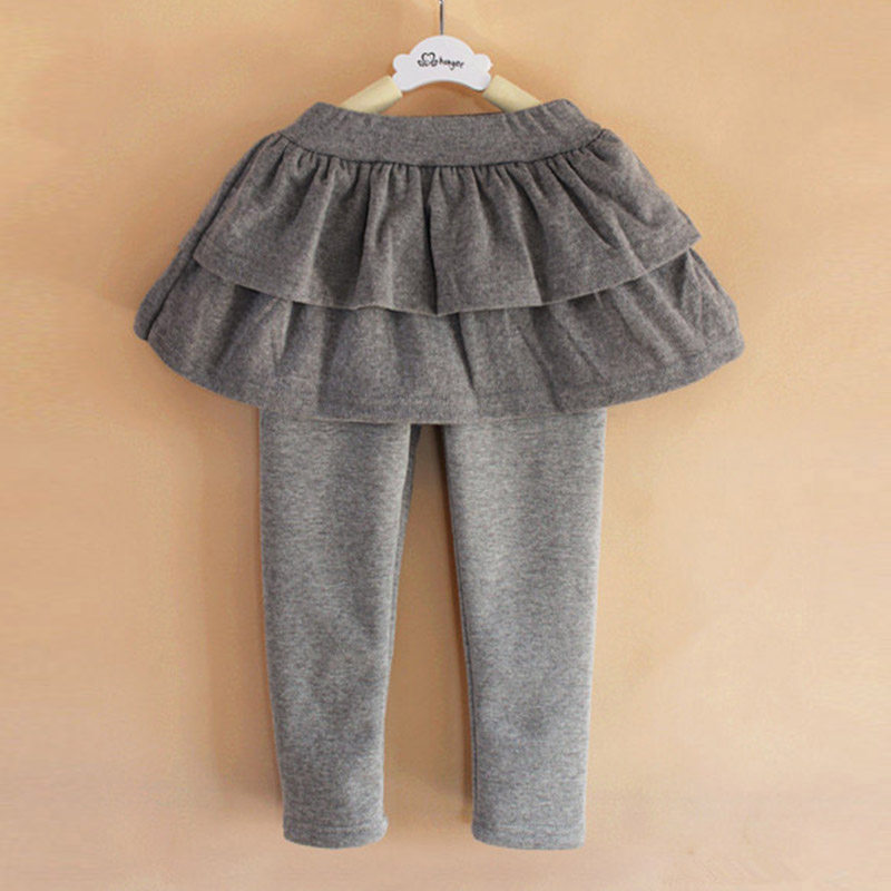 Girl inside lap pants autumn winter style Han version lotus leaf dress pants fake two children plus suede thickened warm pure cotton long pants