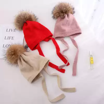 Autumn and winter Korean version of the new children's knitted wool girls pullover hat boys baby warm hat raccoon hair ball tide