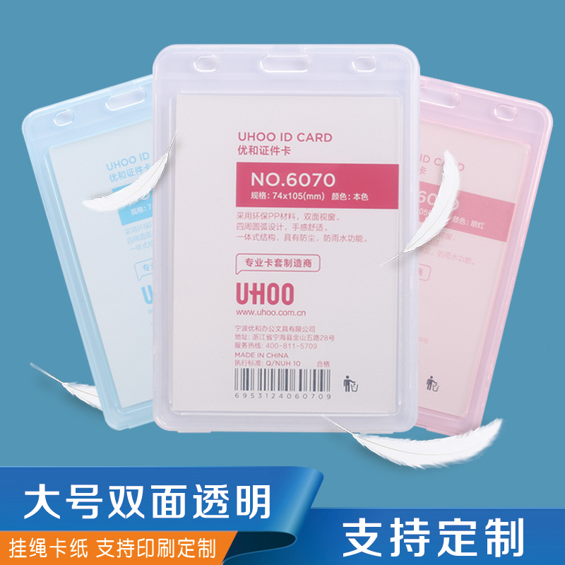 Youhe new one-piece large double-sided transparent plastic card sleeve ID sleeve with rope Work card Visitor exhibition conference card Brand badge Student card card sleeve Lanyard custom logo