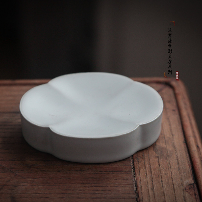 Ruyao Begonia inkstone ceramics Ruyi-shaped inkstone Ceramic pen wash desk Qing Dynasty for Wen play decoration Four treasures of Wenfang