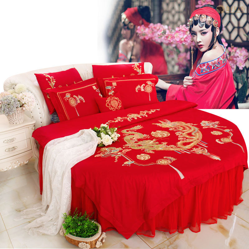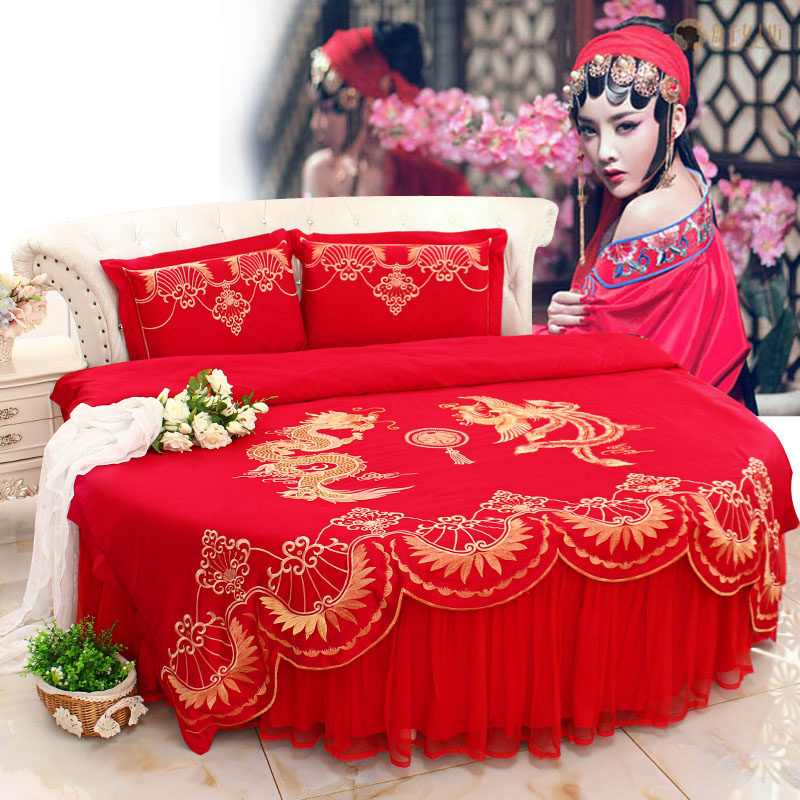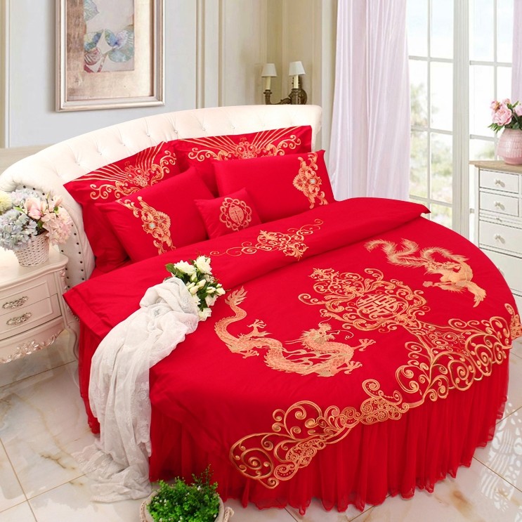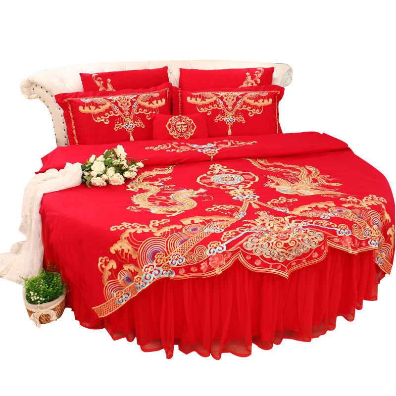 New pure cotton wedding celebration round bed multiple sets of four sets multi-kit wedding celebration wedding red large red dragon phoenix embroidered 2m