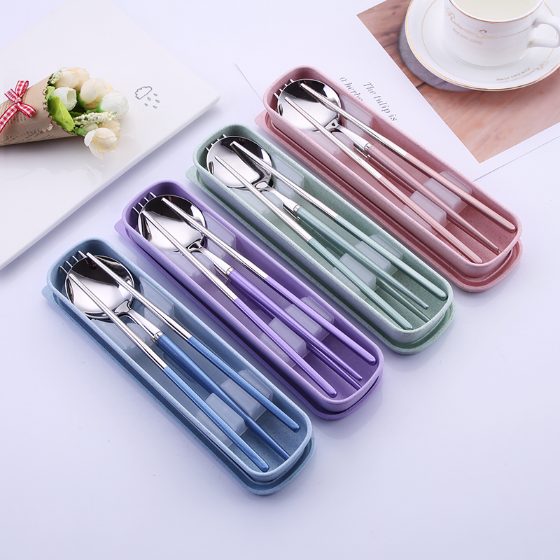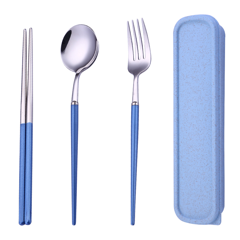 Olefu 304 stainless steel portable tableware three-piece set Korean version of non-slip student chopsticks spoon set travel