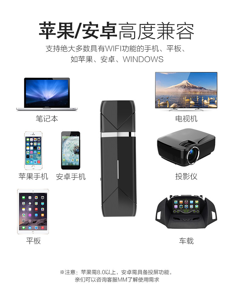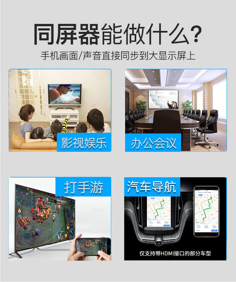 Mobile phone wireless connected TV simultaneous screen converter Android mobile phone flat-screen HDMI projector vehicle