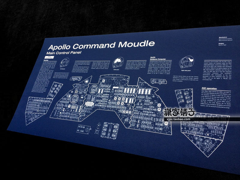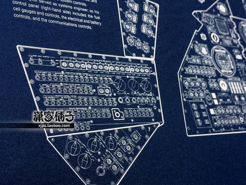 American aerospace NASA Apollo moon landing program command module control panel blueprint hanging painting poster decoration painting