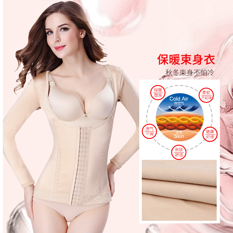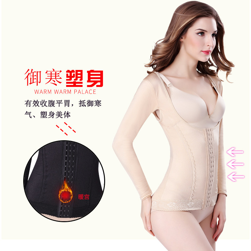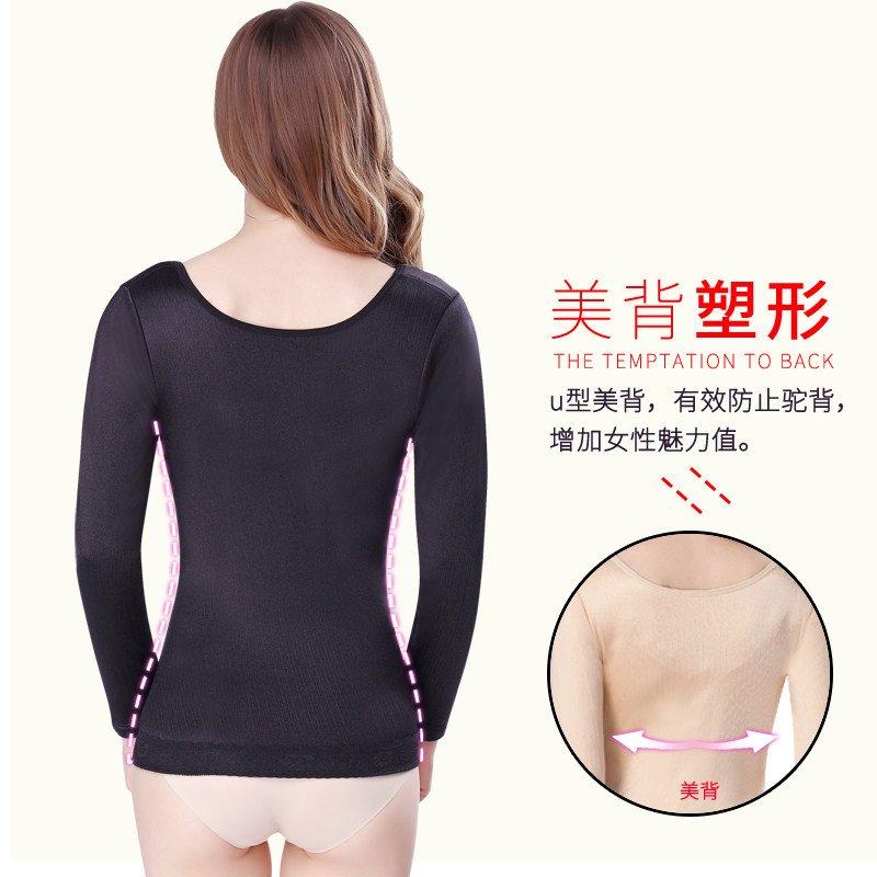 Breasted long-sleeved warm women's plus velvet thickening close-fitting chest tube top body-shaping bottoming thermal top heating clothing