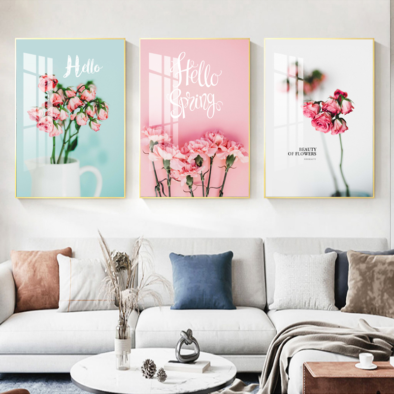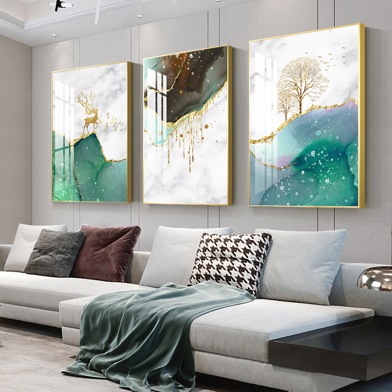 Nordic Living Room Decoration Painting Modern Minimalist Style Mural Sofa Background Wall Painting Green Planting Hanging Painting Bedroom Triple Painting-Taobao