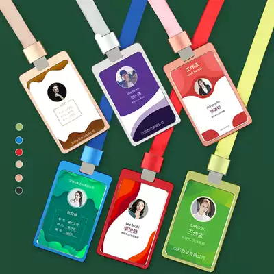 Aluminum alloy work permit card set with lanyard high-grade metal factory brand set custom-made company badge high-end employee listing badge card set work card work card number plate hanging shell customization