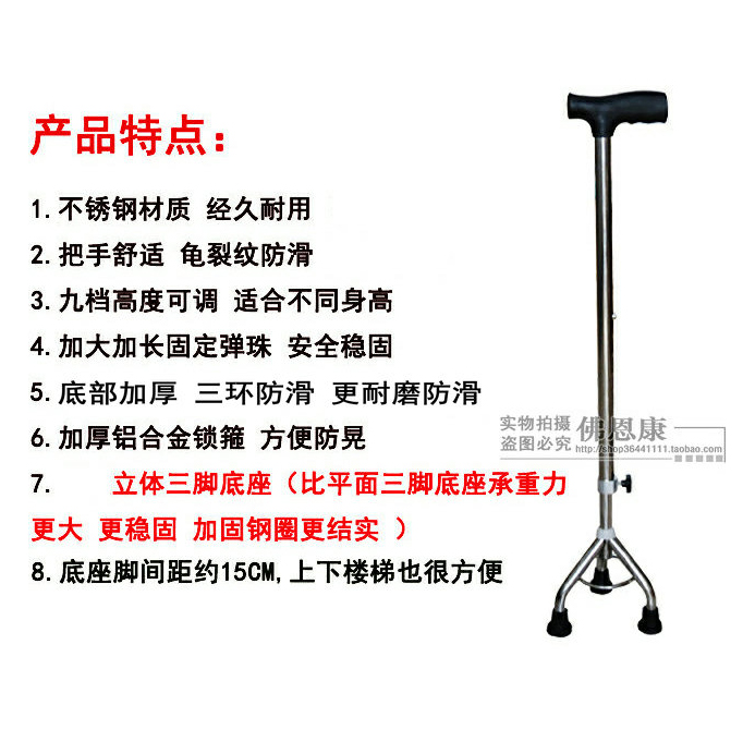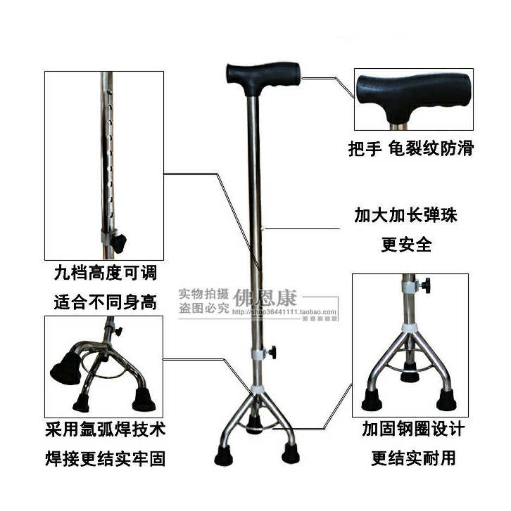 Buy one get 6 stainless steel three-legged cane for the elderly triangle cane walker Three-legged crutch can adjust the height of 9 gears