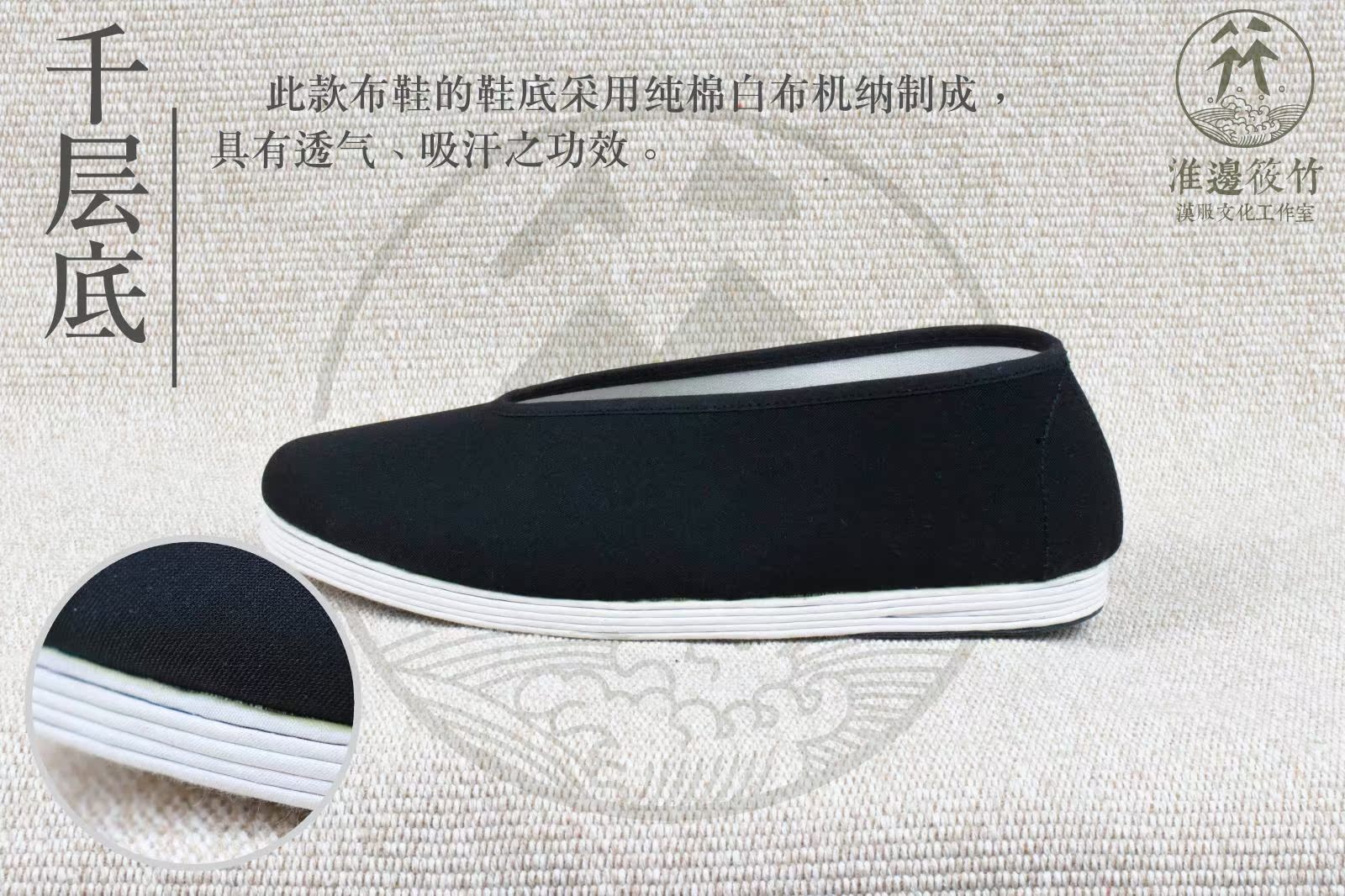 (Huaibian Xiaozhu) Hanfu Cloth Shoes Hanfu Men's Shoes Traditional Old Beijing Round Mouth Melaleuca Bottom Handmade Cloth Shoes