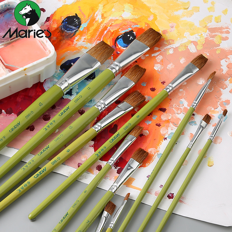 Marley brand gouache brush set 12 sets of horsehair animal hair watercolor paint pen beginner art students special painting pen acrylic brush oil brush row pen brush pen set adult
