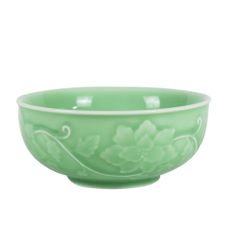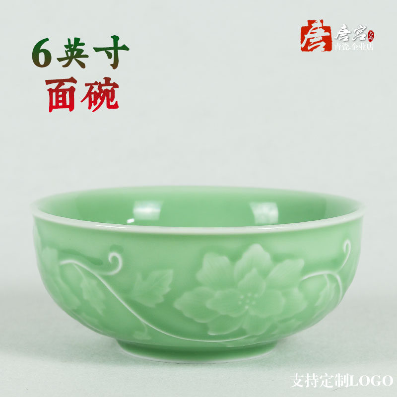 Longquan Tang Palace celadon ceramic special tableware household noodle bowl large and medium relief three-dimensional rice bowl deep soup vegetable bowl