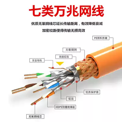 Super seven three-layer shielding 10 million Gigabit Internet cafe project cat7 pure copper network route home high-speed outdoor monitoring 300 meters
