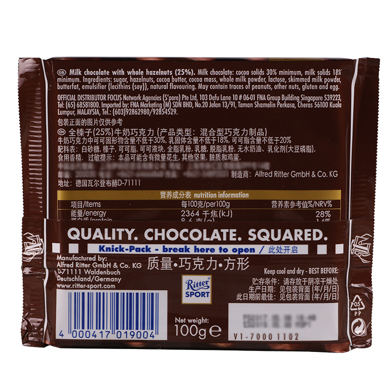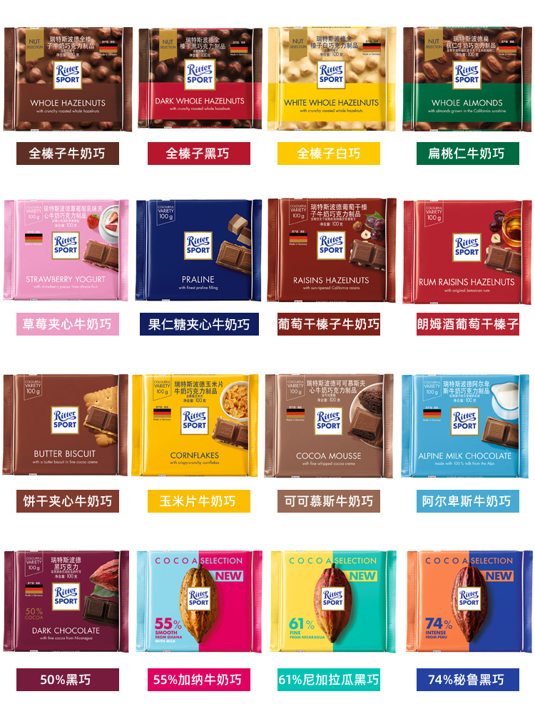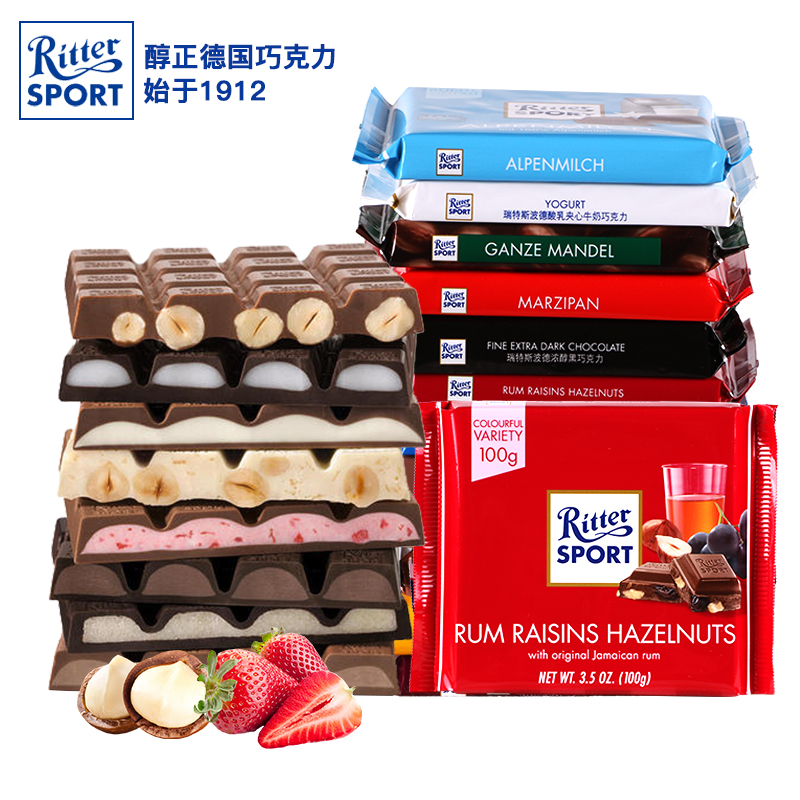 German imports RitterSport Rites Poder sports Milk sandwich Black Chocolate New Year Zero Food