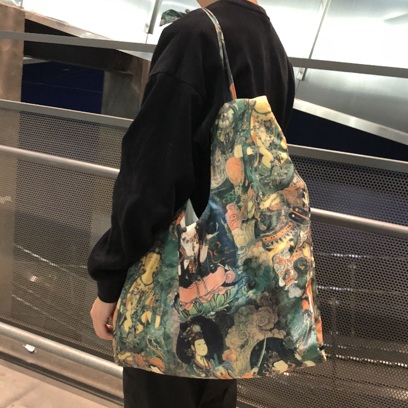 Land and Mountain Design Sensory Faculties Large Capacity Satchel Thicken Art and Men Handmade Canvas Bags Single Shoulder Diagonal Satchel Bag
