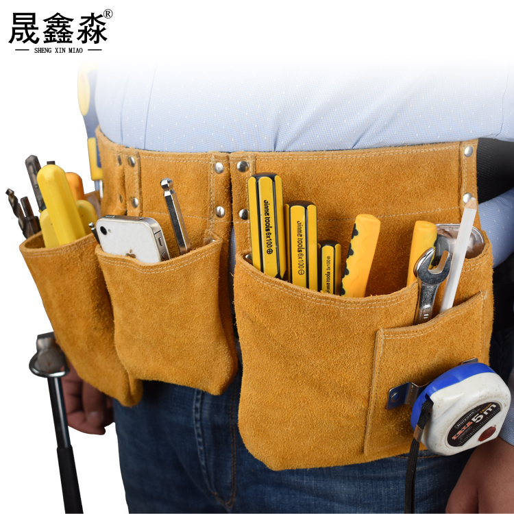 Cowhide woodworking tool bag thickened wear-resistant nail pocket portable repair tool pocket wallpaper repair electrician belt