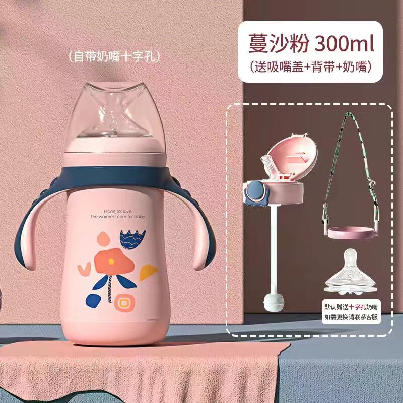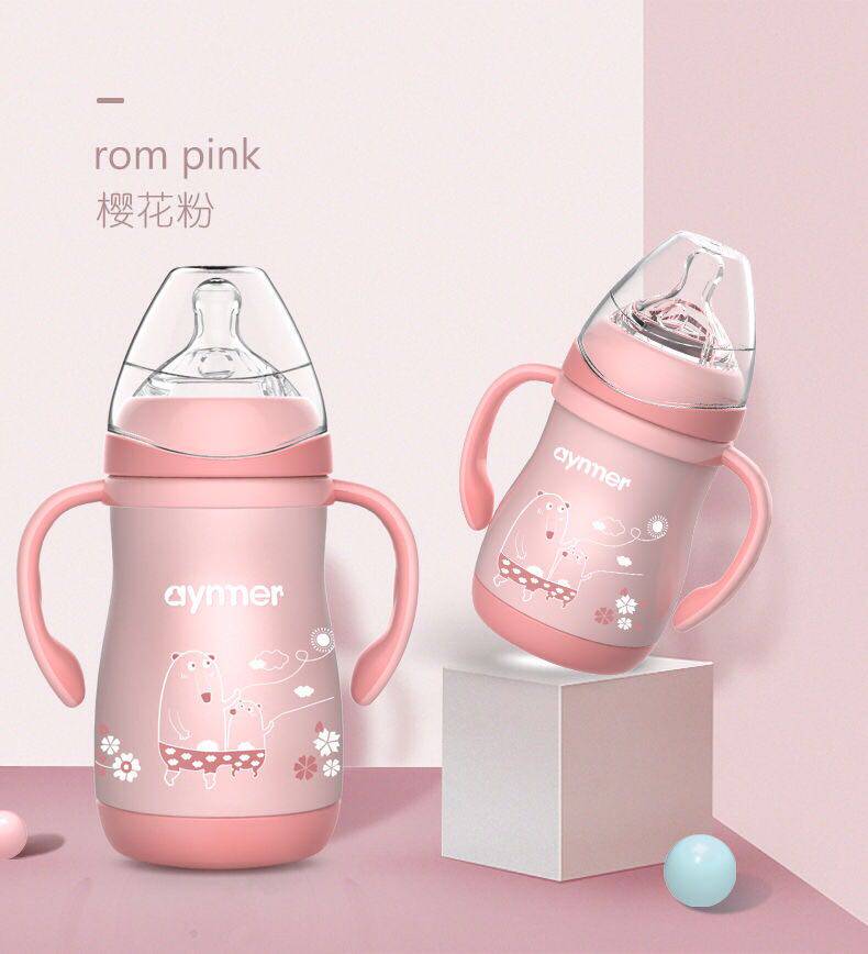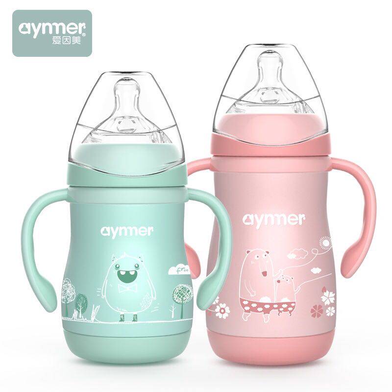 Ainmei thermal insulation bottle baby stainless steel bottle baby anti-fall anti-flatulence wide mouth silicone pacifier