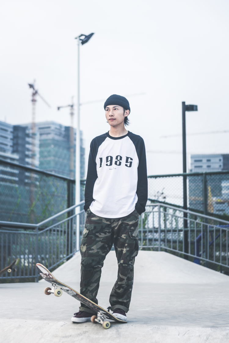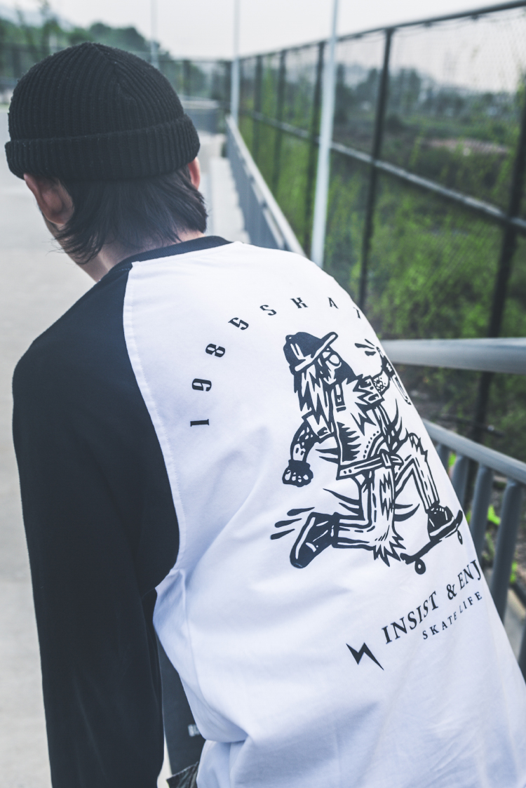 1985 skateboard long sleeve male T-shirt female inserted shoulder round collar autumn and white collared casual sports skateboard clothes-Taobao