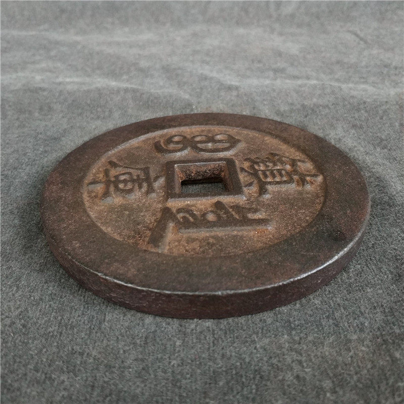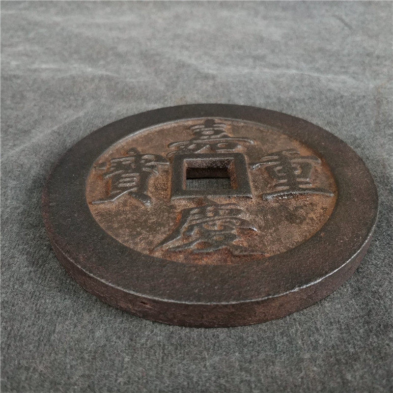 Antique Ancient Play Hot Selling Collection Old Iron Money Jiaqing Rebao Town Library Money Workmanship Delicacy Xiangya