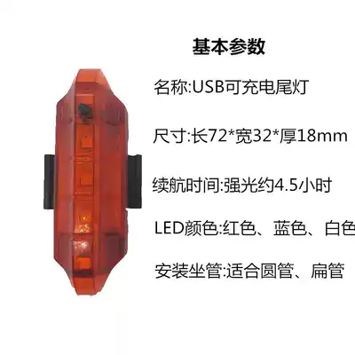Bicycle tail light USB charging mountain bike accessories rear warning light night riding equipment bicycle light flashing headlight