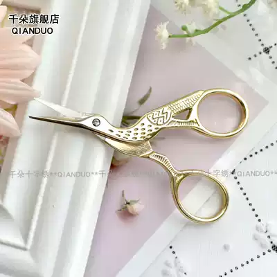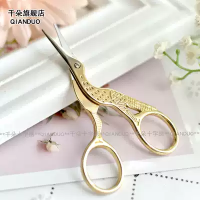 Thousand flowers cross stitch tools Antique scissors Golden crane mouth scissors small scissors Vintage household scissors