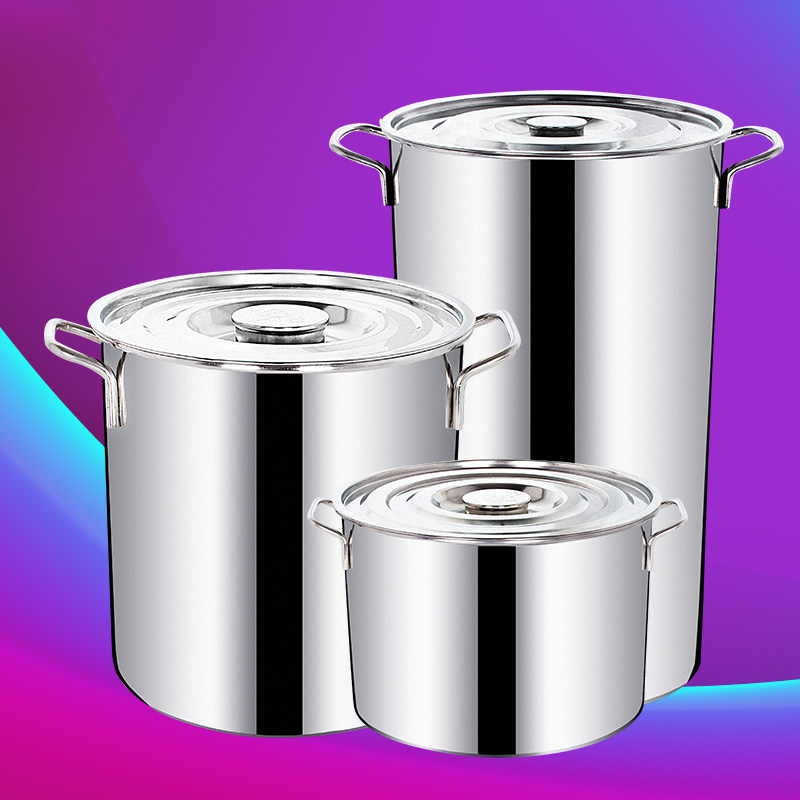 Commercial soup pot with lid stainless steel 304 soup barrel large-capacity thickened large soup pot household water barrel round barrel oil barrel