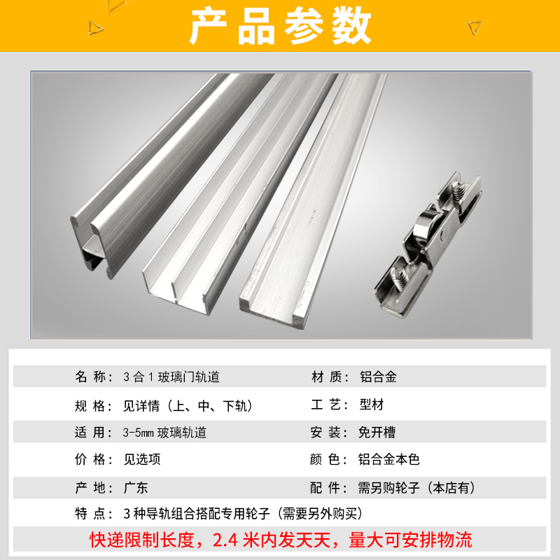 3-5mm Three-in-one frameless glass sliding door H track window sliding door slide display cabinet glass sliding door guide