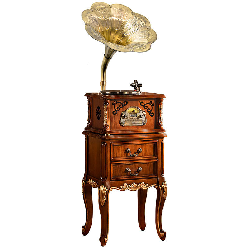 This ink solid wood gramophonic machine old sound living-room European-style black glue record machine antique grammatical electromechanical record machine A18