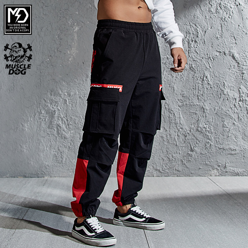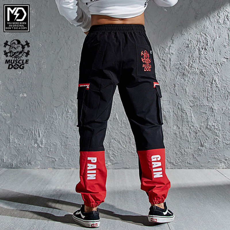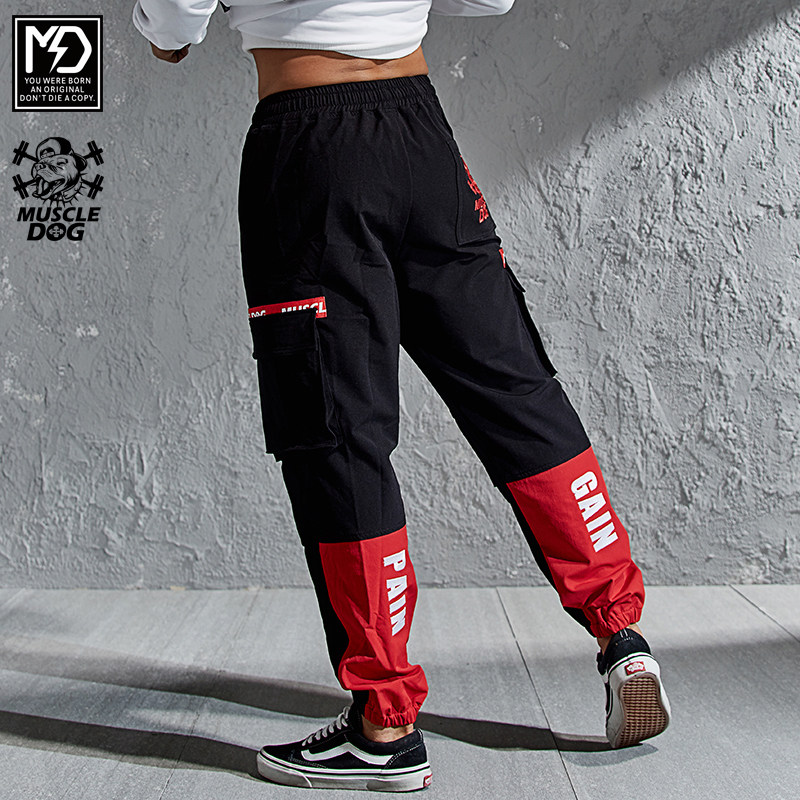 MuscleDog Muscle Dog Winter Sticker Bag Contrast Loose Bundle Foot Sweatpants Fitness Training Sports Pants Men