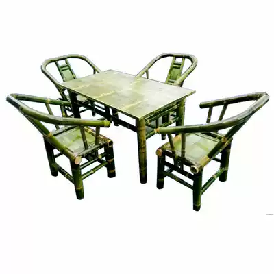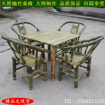 Natural Chinese handmade outdoor square bamboo table and chair combination Pastoral leisure dining table Simple modern country courtyard