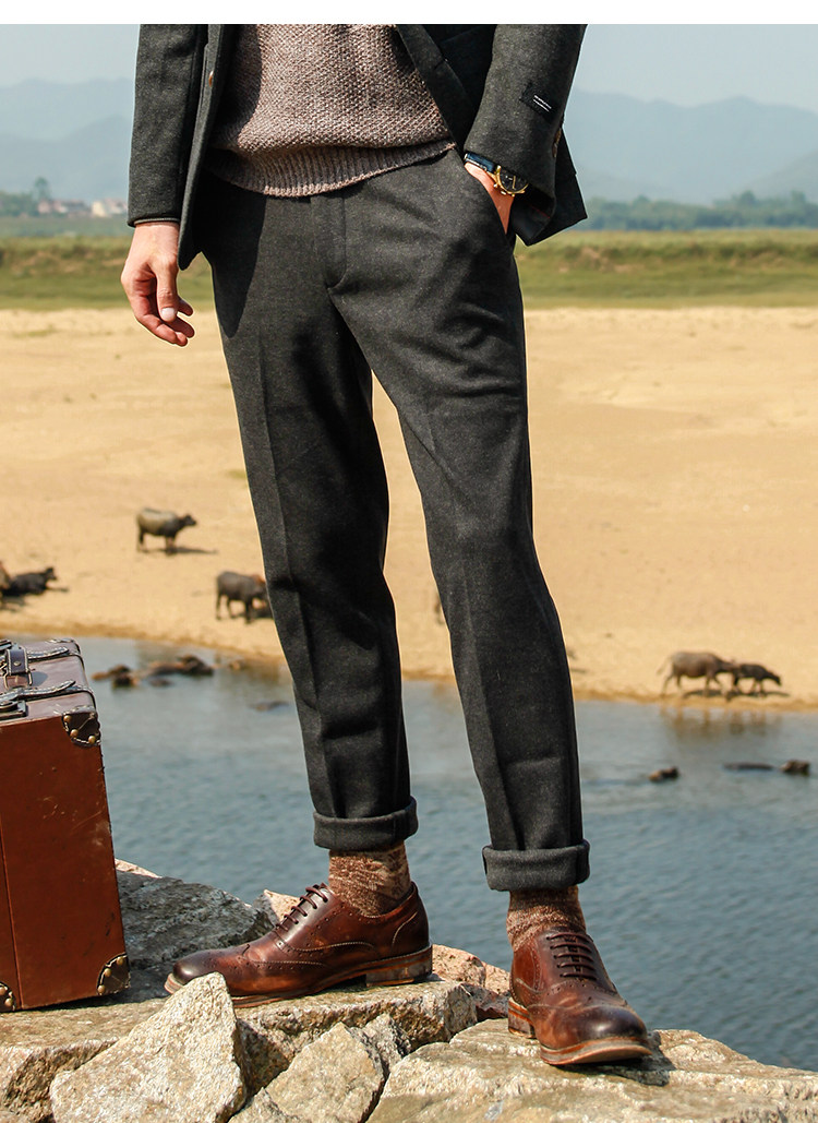 Men's retro Gafu to increase fatter grinding, elastic casual pants thickened with small feet large size for autumn and winter style trousers
