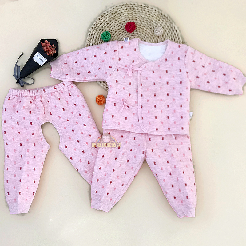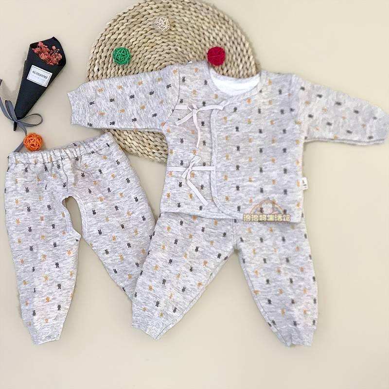 Baby Beile Baby Autumn and Winter Newborn Air Cotton Monk Clothes Underwear Set Baby Colored Yarn Warm Three-piece Set