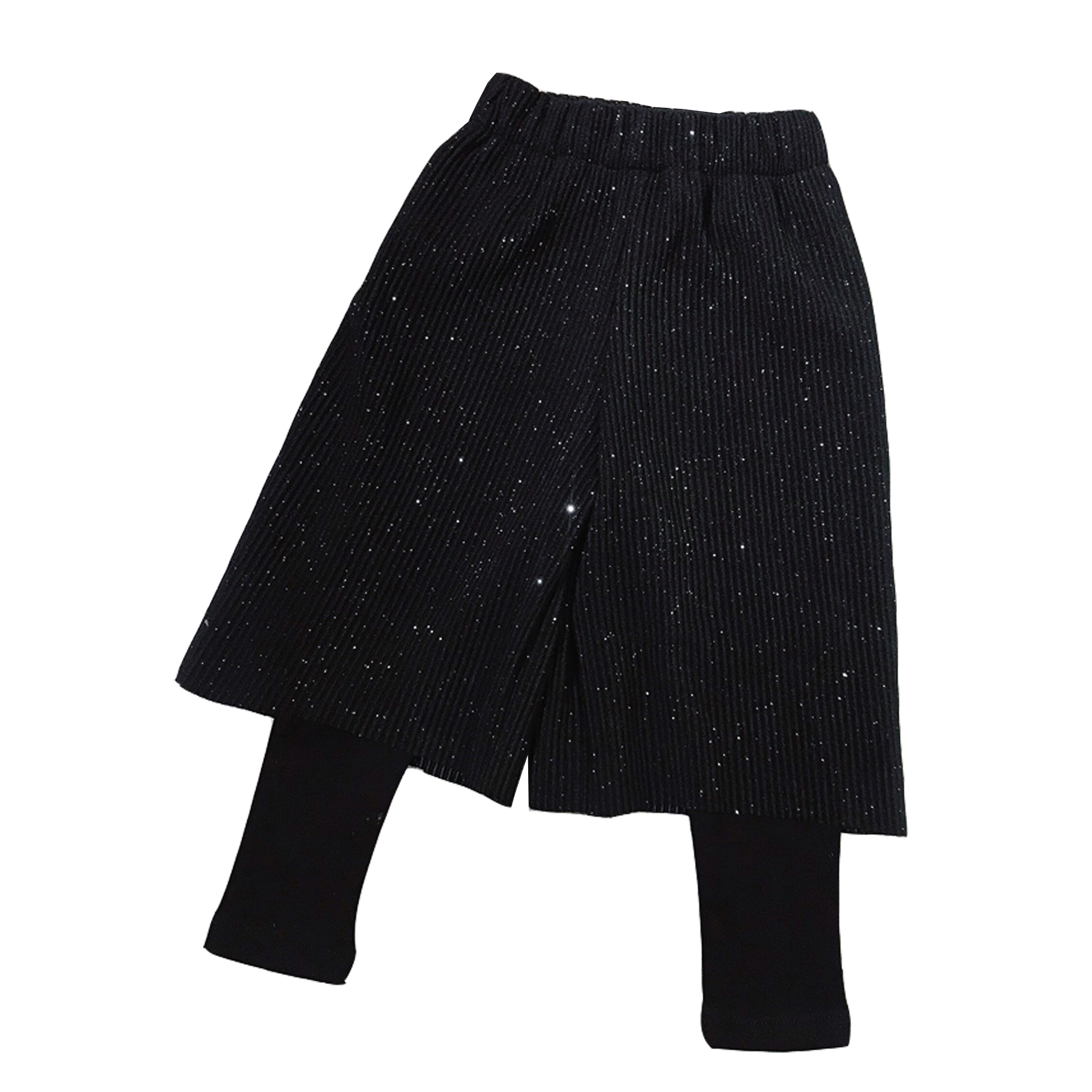 Girl gush thickened fake two-piece broadlegged pants 2022 Winter new Child foreign sparkless hitch pants long pants