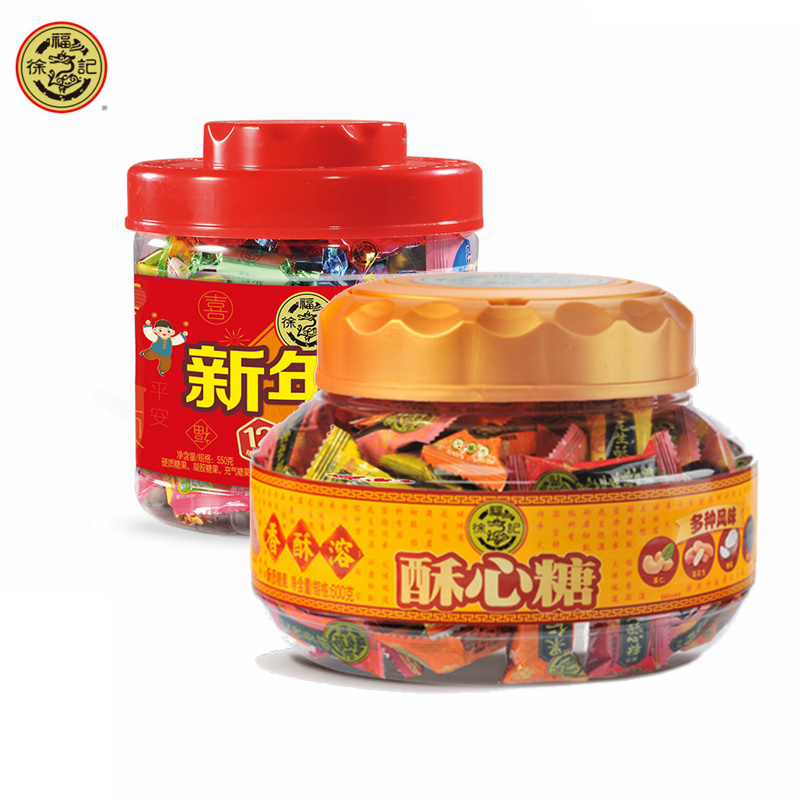 Xu Fuji New Year's Candy Crisp Heart Candy 2 Barrels Candy Gift Box 1150g Wedding Celebration Candy New Year's Goods Snacks Big Gift Pack
