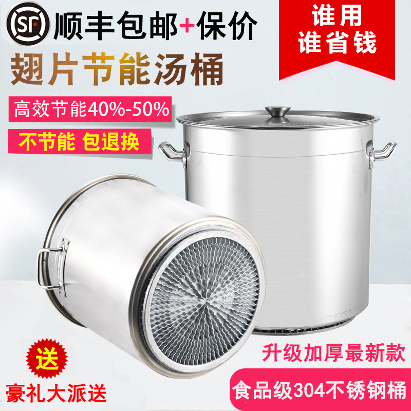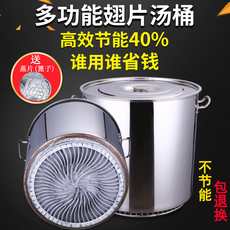 Commercial finned energy-saving soup pot soup bucket stainless steel bucket with cover thickened large-capacity brine pot brine bucket drum composite bottom