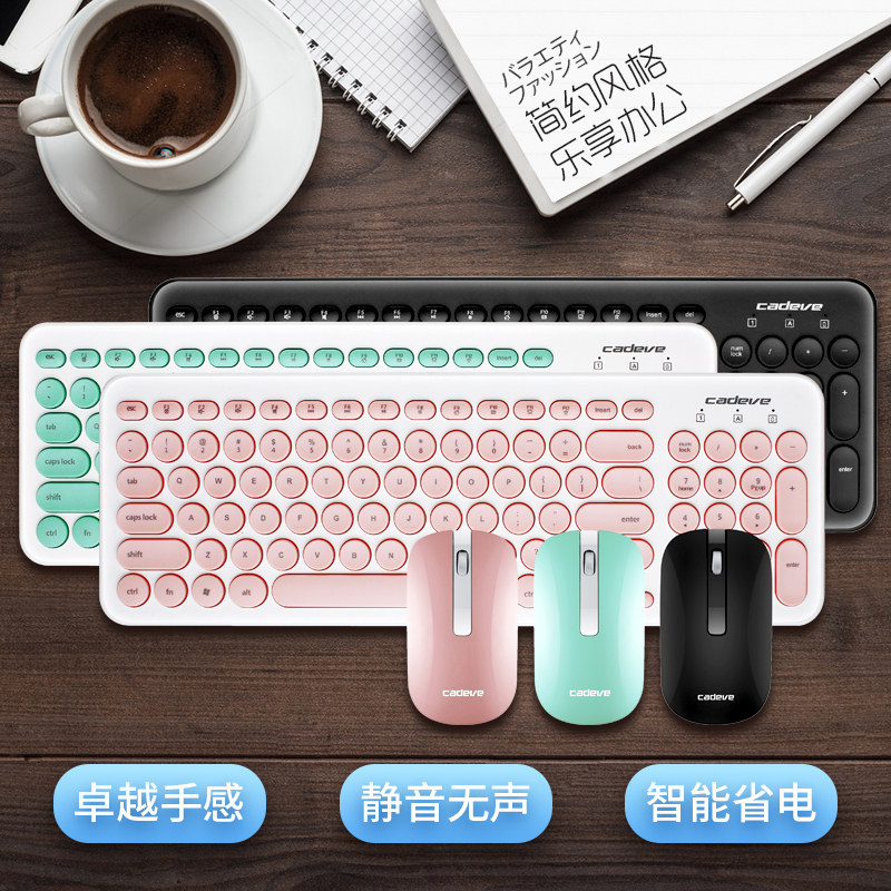 Retro punk pink ultra-thin mute wireless keyboard and mouse set desktop computer notebook female key mouse set