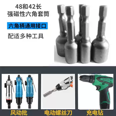 Color steel plate screw sleeve with magnetic short pneumatic screwdriver sleeve electric screwdriver sleeve electric drill sleeve 48mm long