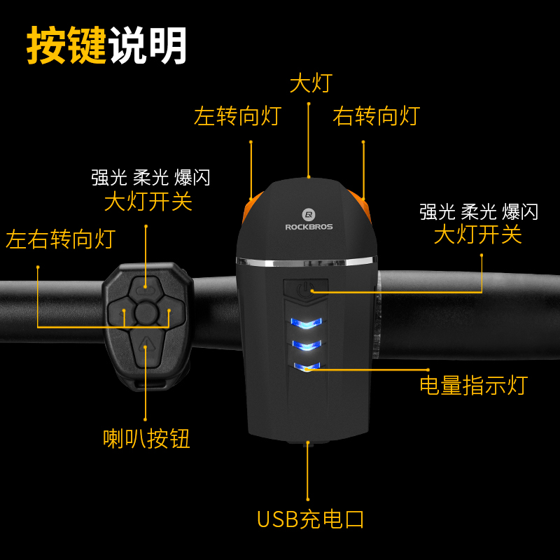 Locke Brothers remote control bicycle light car headlights with horn burglar alarm USB charging mountain night riding equipment