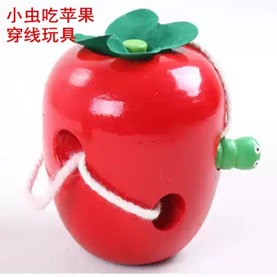 Large insects eat fruit toys wear rope strings around beads Meng's Early Education Center 2-3 children's wooden teaching aids