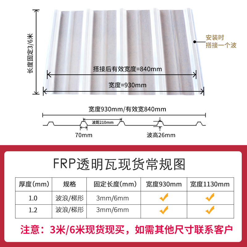 Transparent tile lighting tile PC anti-compression tile anti-corrosion tile 840 type frp carport tile thermal insulation tile transparent tile wave