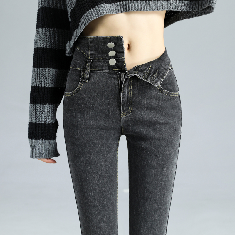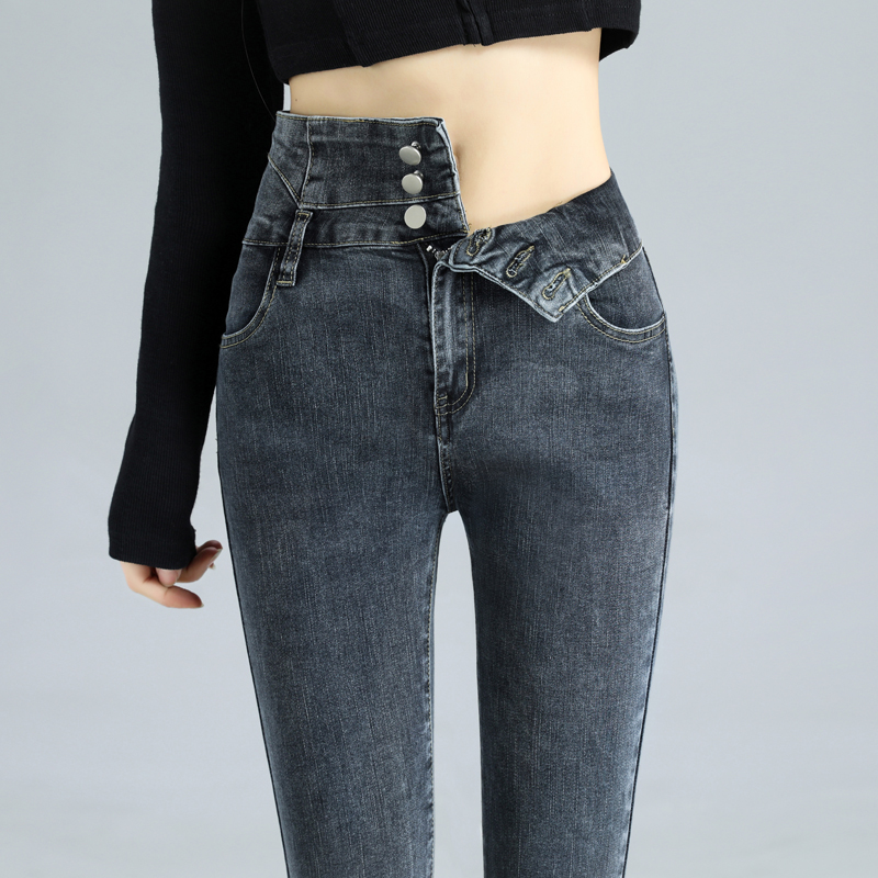 Black jeans women's summer thin section 2021 new high waist thin wild tight stretch small feet long pants