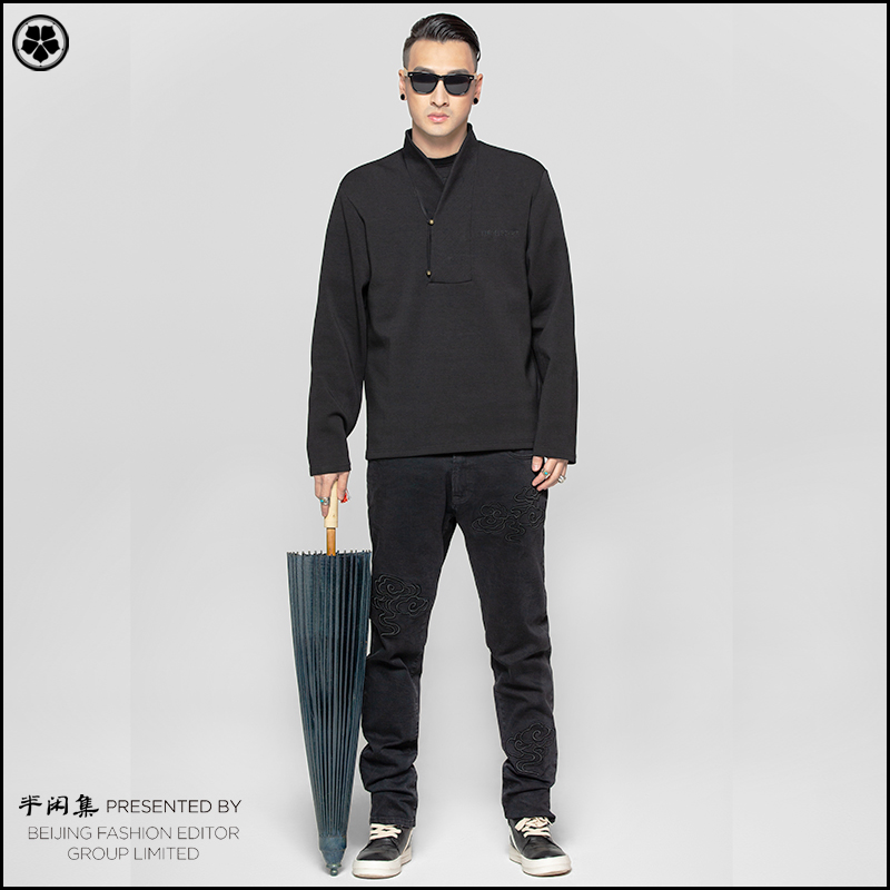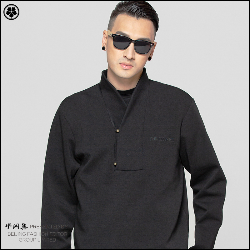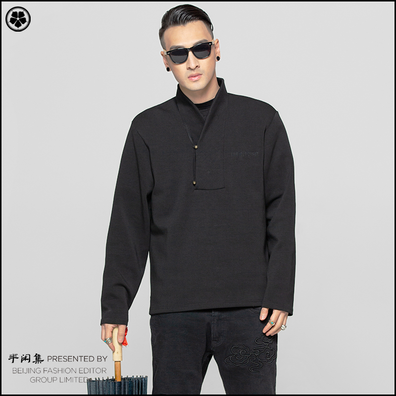 Semi-casual set of copper button sweater Chinese style Hanfu collar jacket Hipster youth fashion hip hop casual pullover spring top