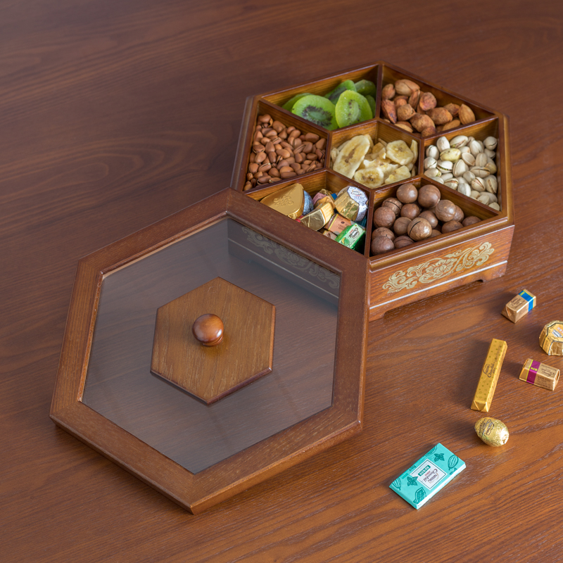 Solid wood dry fruit box Sub-grid with lid Creative modern Living room Marriage Chinese melon Candy Tea Table Woody Dry Fruit Tray